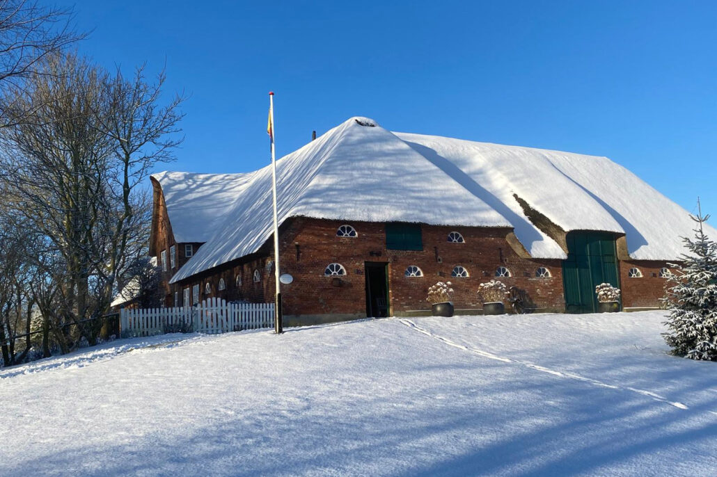 Der historische Reetdachhof aus dem Jahr 1856 liegt eingebettet in Wiesen und Weite, unter dem offenen Himmel Nordfrieslands. Rund um das Haus prägen Obstgarten, Bauerngarten, Felder und Schafsweiden den ruhigen Rhythmus des Hofes. Licht, Jahreszeiten und Wetter verändern die Stimmung – und machen jeden Moment einzigartig.